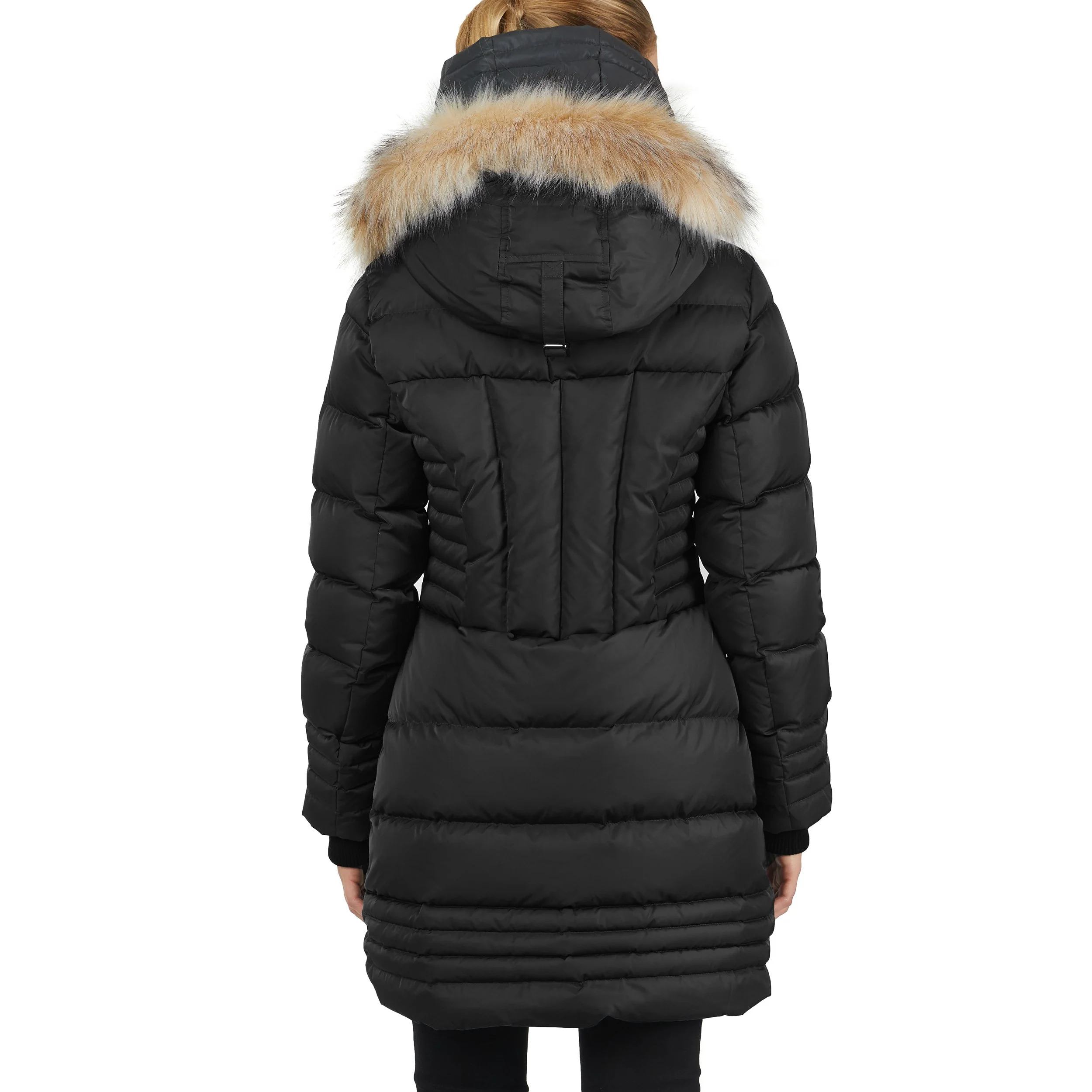 Fixed hood with detachable faux fur trim. Equipped with zipper pockets, and cozy rib knit storm cuffs with thumbhole.